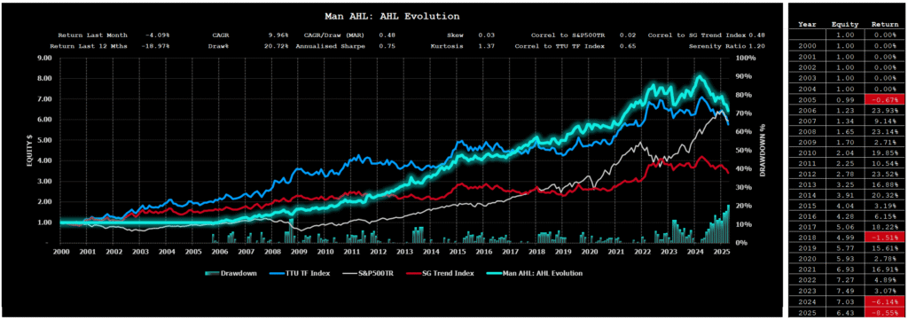 For the 2025 year following the rebalance of the Index we say goodbye to the PIMCO LLC (Pimco Trends Managed Futures) Program and hello again to the Winton Capital Management (Winton Trend) Program. The listing of the 10 eligible programs in the Index for 2025 is as follows:
