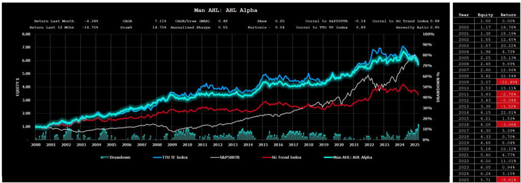 This month’s drawdowns have put significant pressure on even the most seasoned managers. The concept of “trend integrity” — the ability of directional moves to persist — has all but evaporated for now. Outliers failed to develop, and noise dominated across the board.