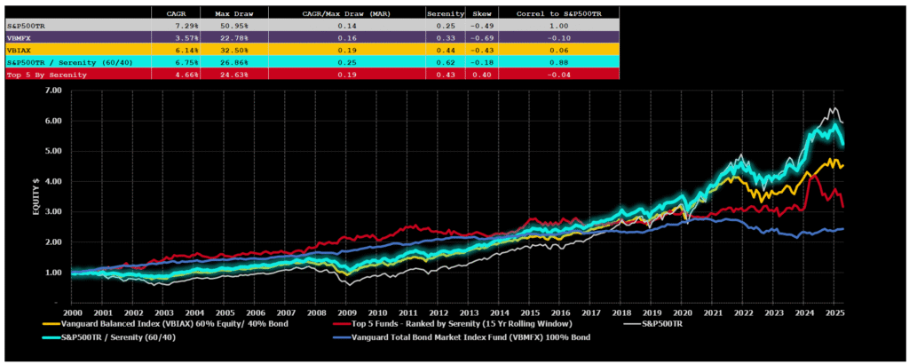 - Top 5 Performers by Serenity Ratio using a rolling lookback of 15 years.