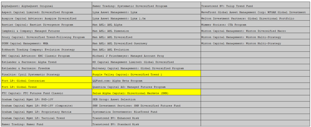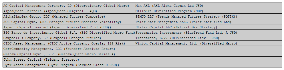 For the 2026 year, following the annual rebalance of the Index, we say goodbye to the Systematica Investments (BlueTrend) Program and welcome back the PIMCO LLC (PIMCO Trends Managed Futures) Program. The listing of the 10 eligible programs in the Index for 2026 is as follows: