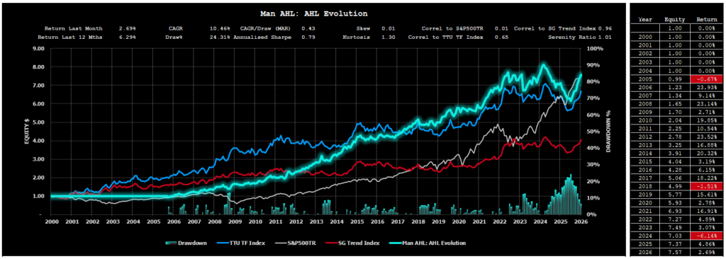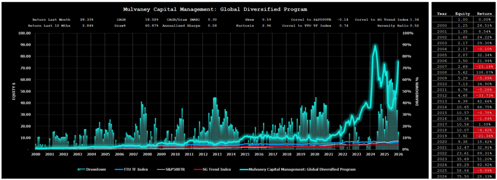 For trend followers, January 2026 provided what 2025 largely withheld: confirmation that patience and process can be rewarded when conditions shift. Whether this marks the beginning of a sustained favourable regime or an isolated burst of opportunity remains to be seen, but the signals are more encouraging than they have been in some time.