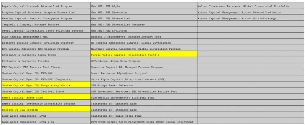 For the 2025 year, following the rebalance of the Index, we say goodbye to the PIMCO LLC (Pimco Trends Managed Futures) Program and hello again to the Winton Capital Management (Winton Trend) Program. The listing of the 10 eligible programs in the Index for 2025 is as follows: