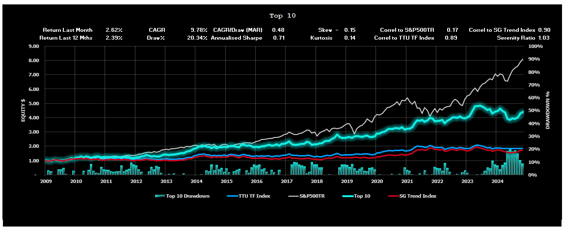 The SG Trend Index is designed to track the 10 largest trend following CTAs of the Managed Futures space.
