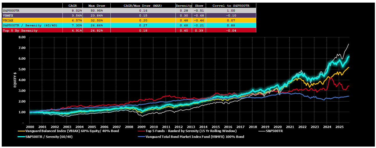 - Top 5 Performers by Serenity Ratio using a rolling lookback of 15 years.
