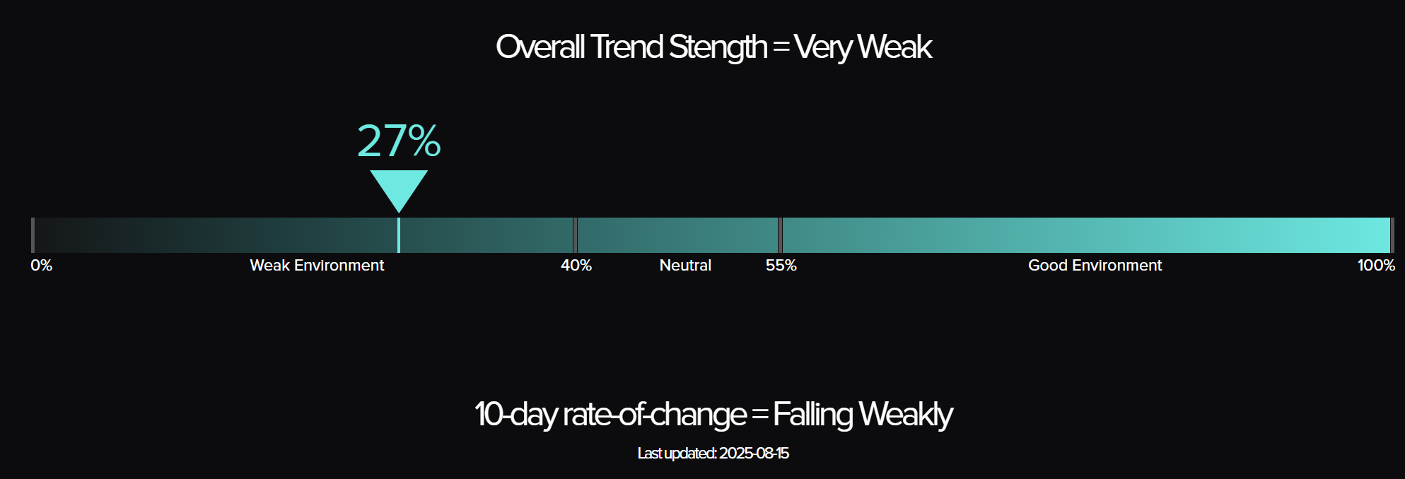 At just 27 percent, fewer than a third of markets show medium-to-strong trends. This is a fragile backdrop. Yet this week proved that when outliers take hold, they can dominate returns.